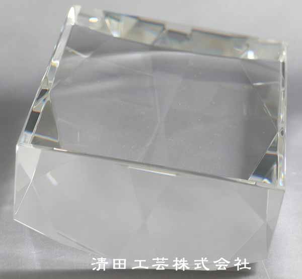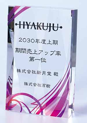 ガラスの中央部分に文字やマークが埋め込まれたように加工できます。イラストレーターで制作した原稿をそのまま加工できます。